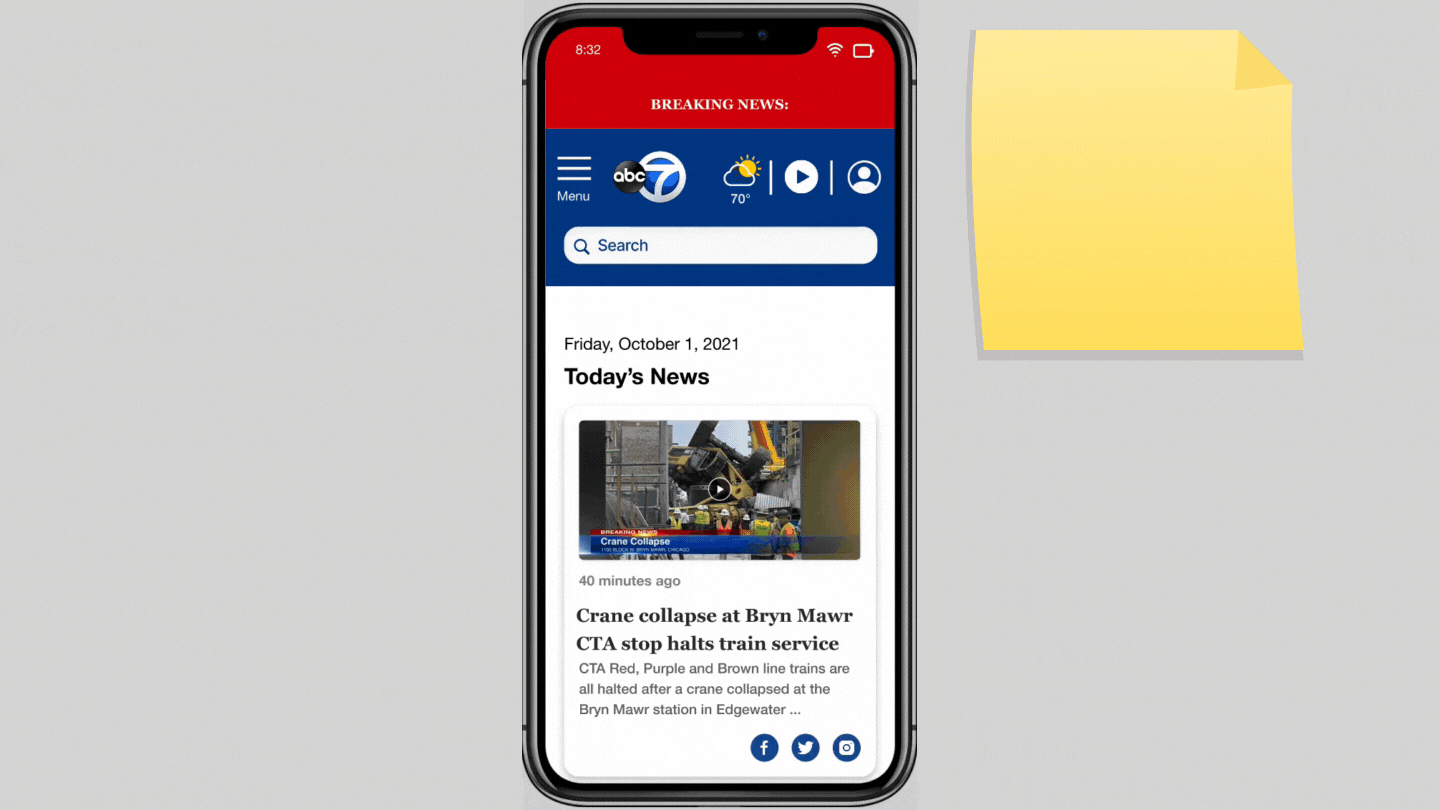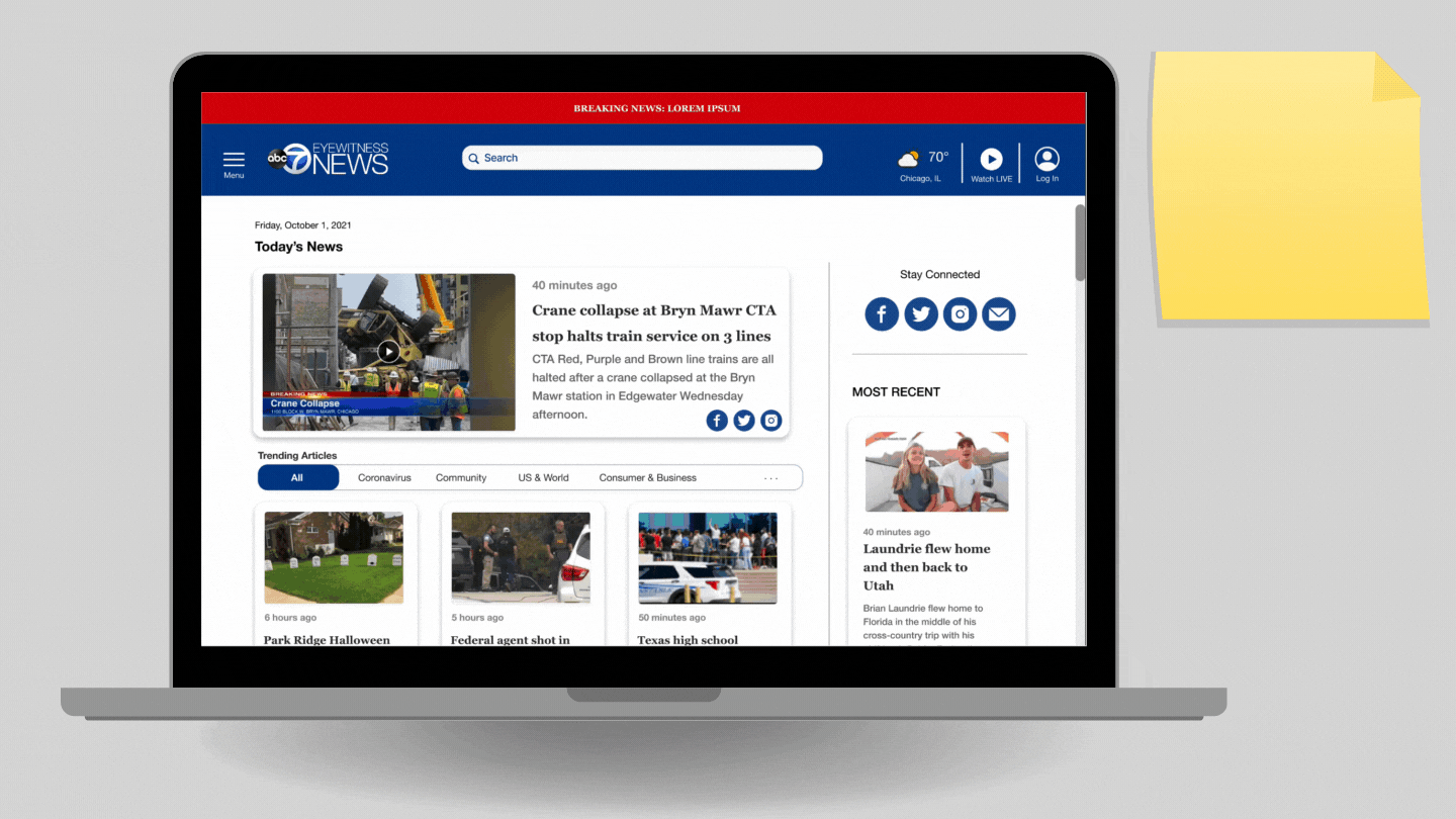 Through research, collaboration, and iteration, we developed a desktop and mobile breakpoint for ABC7 Chicago’s website that includes intuitive navigation, visible CTAs, and consistent & breathable content.